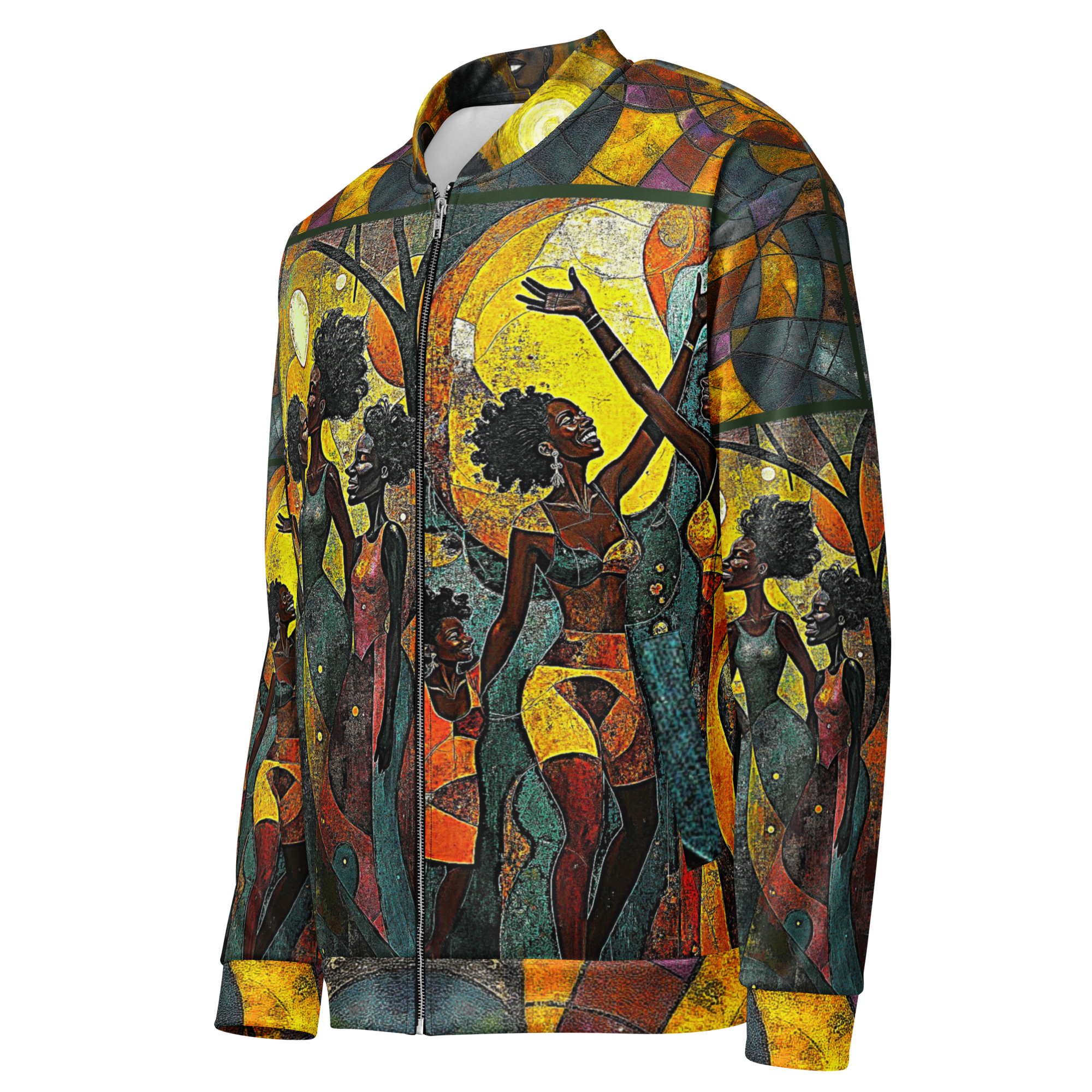 Add a little zing to your wardrobe with this vibrant All-Over Print Bomber Jacket. Wear it on a basic t-shirt, or layer it on top of a warm hoodie—it’ll look great either way. With a brushed fleece inside, and a relaxed unisex fit, this Bomber Jacket is just the stuff of the dreams, so be quick to grab yourself one!